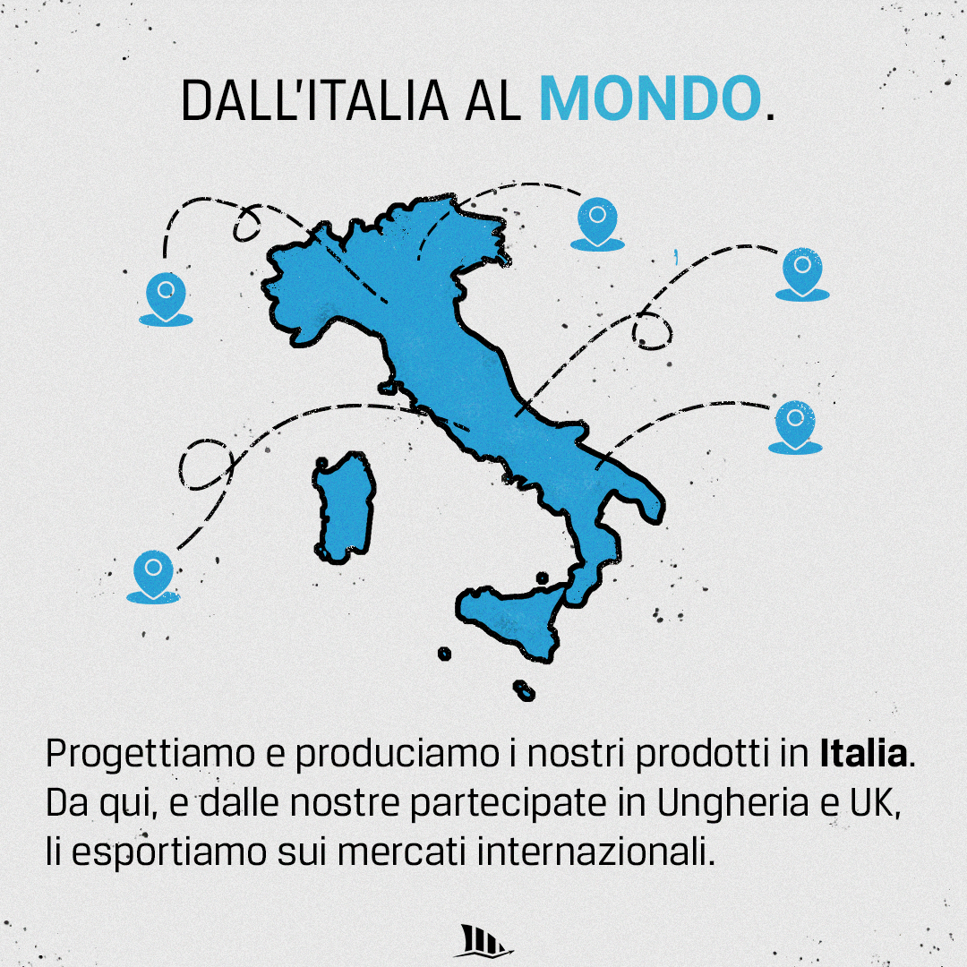 Qui abbiamo la nostra testa e le nostre mani. La nostra filiera di produzione, dal progetto al prodotto finito, comincia e finisce in Italia. Da qui esportiamo in tutta Europa, grazie anche alle nostre controllate in Ungheria e Regno Unito.