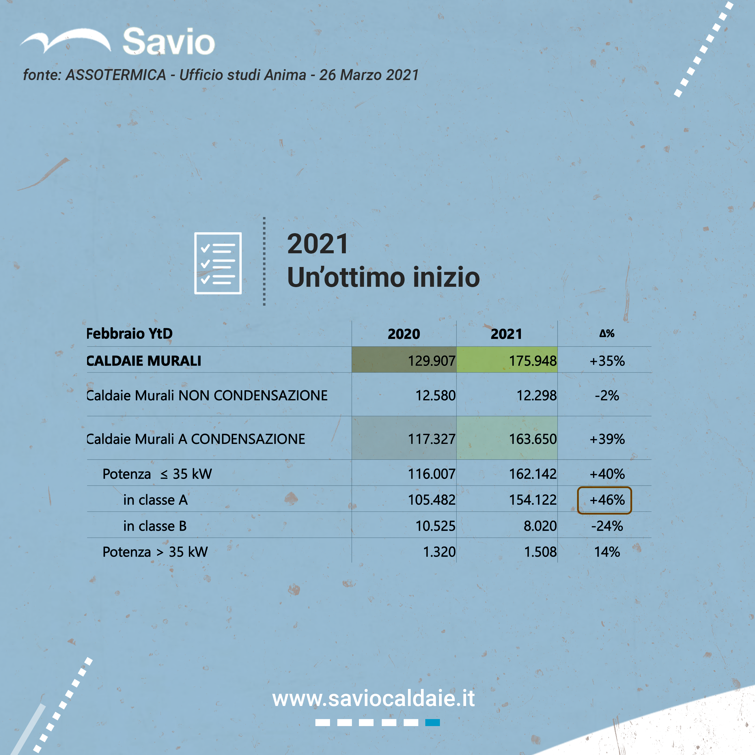 • Ad inizio anno (gen-feb) meglio del 2019 (vendute oltre 10.000 caldaie in più).