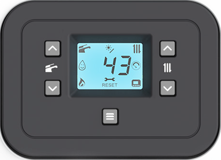 Il comando evoluto (classe V) consente di modulare la temperatura di mandata dell’acqua dell’impianto in funzione della temperatura ambiente e della temperatura esterna.