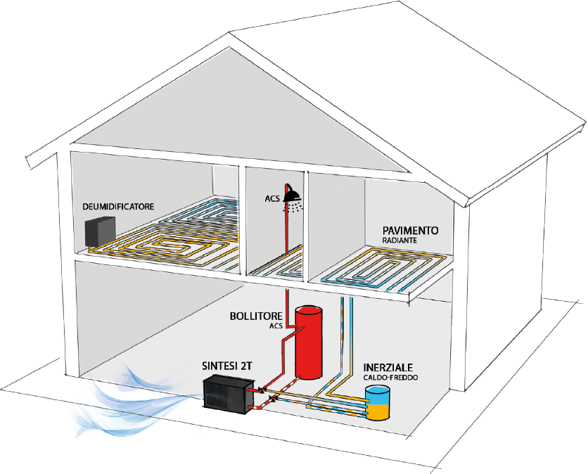 Adatta Monoblocco Pompa di calore 2 tubi